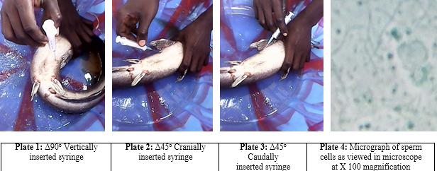 Abstract: Some fish species will readily spawn in captivity while others will not, such as catfishes thus hormones are administered to stimulate spawning. Unfortunately, the males are being killed or at best operated on to harvest the milt before successful breeding in captive African Catfish (C. anguillaris). To possibly put an end to this inhumane practice, this study was aimed at collecting milt with syringe without killing the fish. The milt was collected from 90 African Catfish at 10 – 12 months of age and was viewed in the microscope to check for viable spermatozoa. Results showed that spermatozoa were found in 3(representing 3.3%) out of the 90 fish used in the study and only in Faceup (Ventral) position and Δ90o syringe inserted point that spermatozoa were found in both testes. These findings somewhat demonstrated that milt harvesting using syringe without sacrificing the male C. anguillaris may be possible in captive breeding.